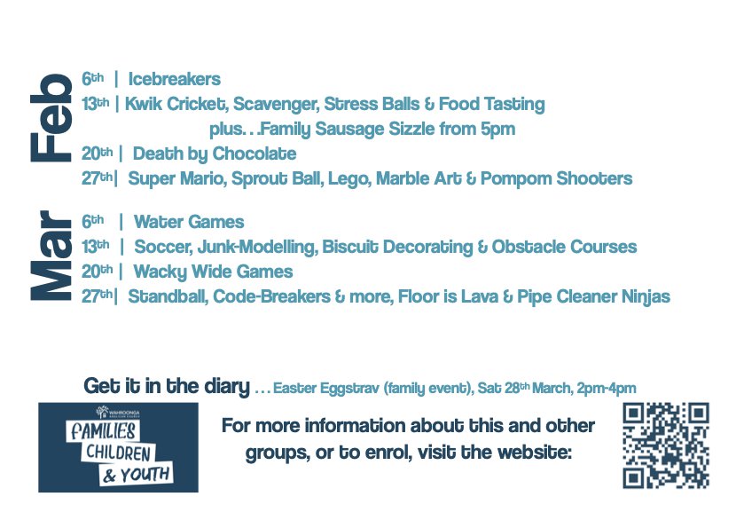 Have a look at the program for term 1 2026 below! If you're coming to one of our programs for the first time, you can enrol here to save time on the day. If you want more info, or to let us know you're coming, send Tamar a message.